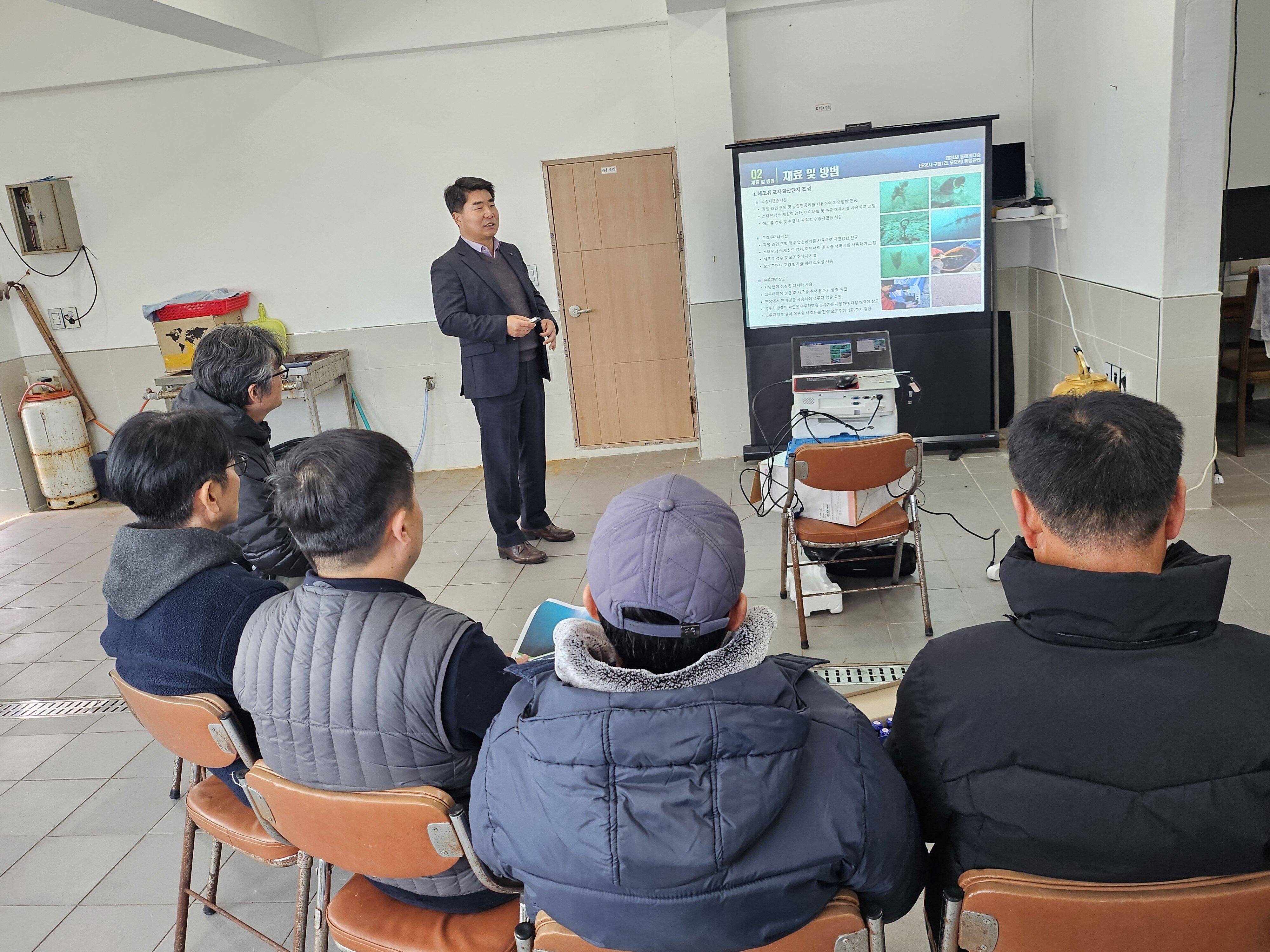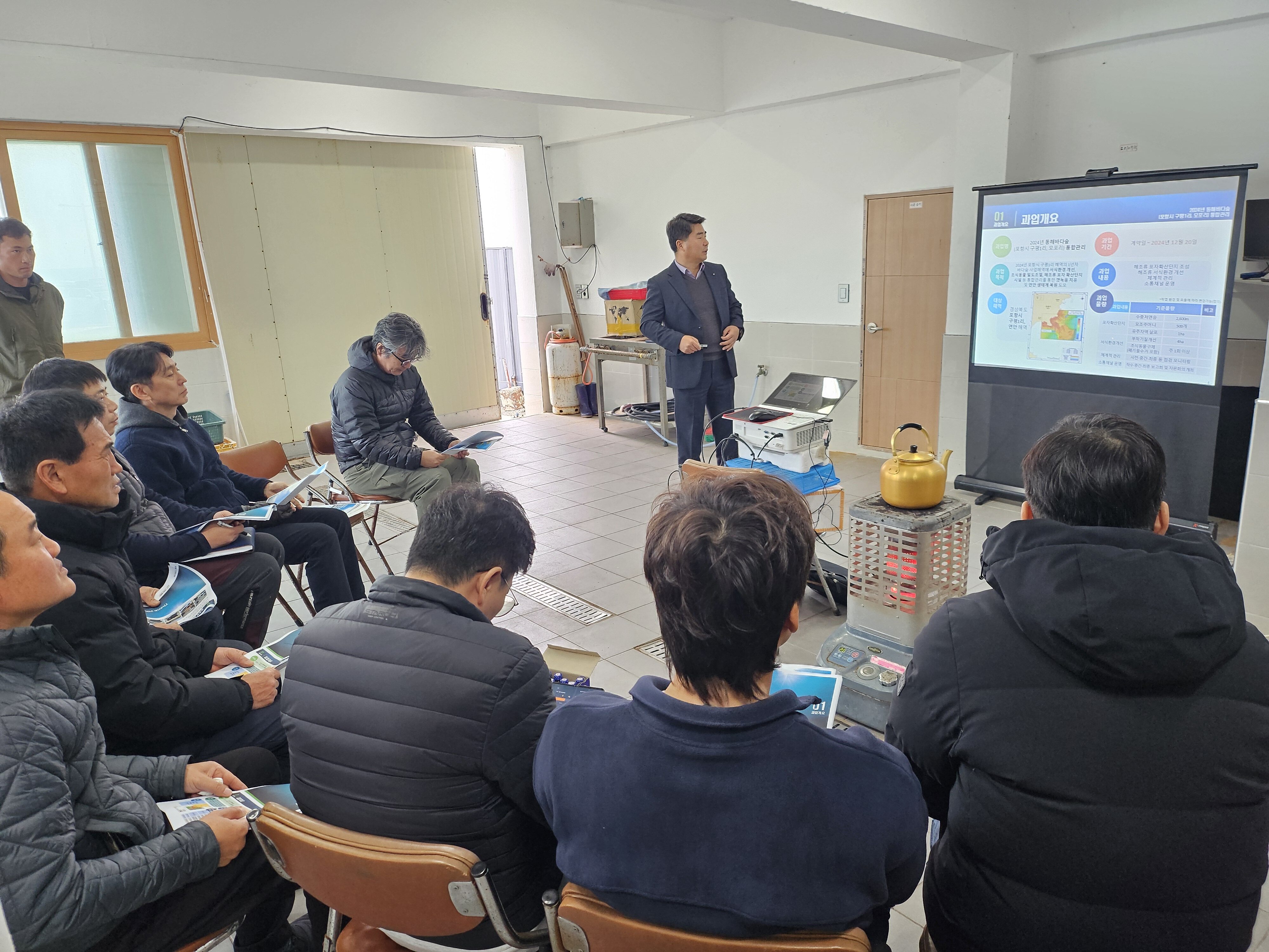 갤러리 2024년 동해바다숲(구평1리, 모포리) 통합관리_최종 보고회 작성자 다이브알앤디 작성일 2024-12-16 15:27 조회 327 일시 : 2024년 12월 12일 오후 1시 장소 : 경북 포항시 구평리 어촌계 참여 : 한국수산자원공단 동해본부, 포항산업과학원, 한국생태연구원(주), 윤슬해양연구소 좋아요 0 싫어요 0 인쇄 2025년도 Workshop in 무주 « » 2024년 울산광역시 어초어장 관리지 "효과조사 및 모니터링" 목록보기